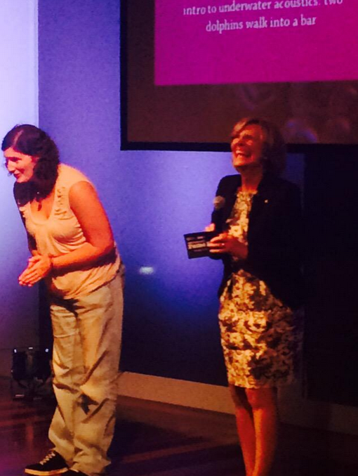 “Tursiops Wins Again!” – Lyn Beazley presents me as the FameLab WA People’s Choice winner